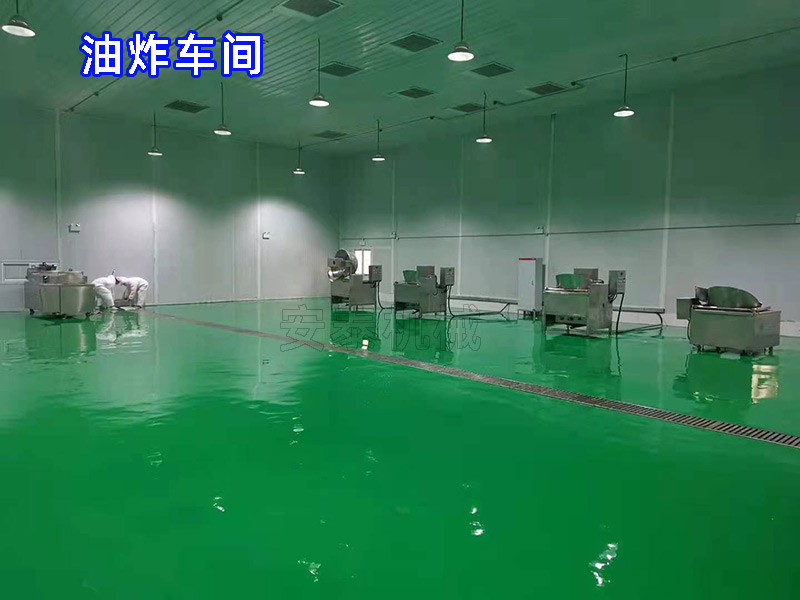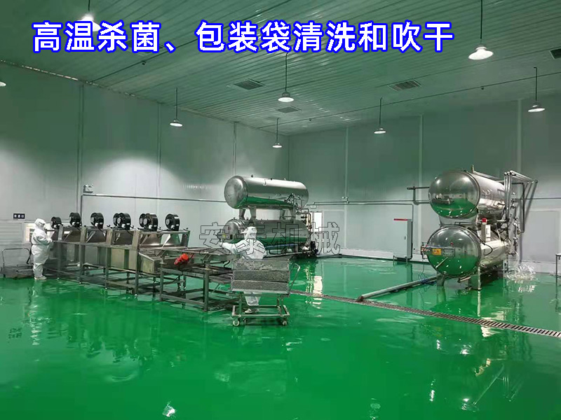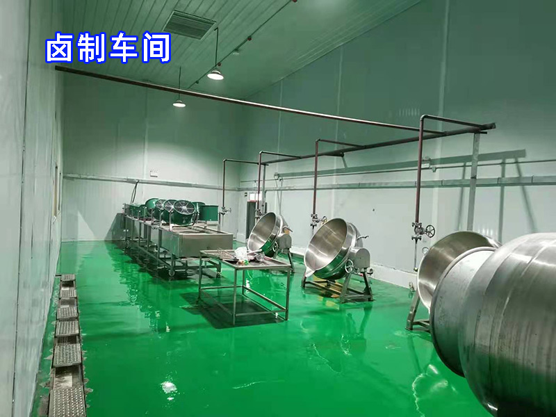 原料準備---解凍---漂燙---冷卻---油炸---鹵制---包裝---高溫殺菌---包裝袋清洗---振動瀝水---包裝袋風干---入庫