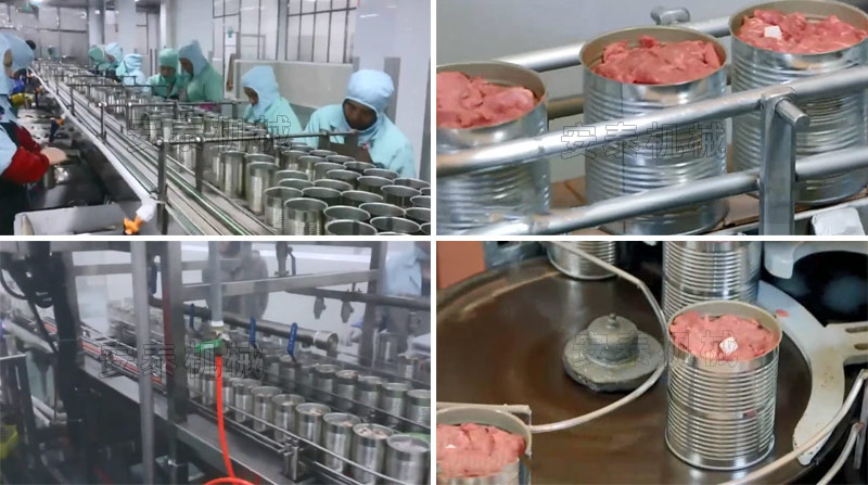 鮮肉修改—預煮—切塊—裝罐—封罐—殺菌—裝卸籠—實罐清洗—吹干—貼標—罐頭碼垛—罐頭卸垛—開箱—裝箱—封箱—碼垛